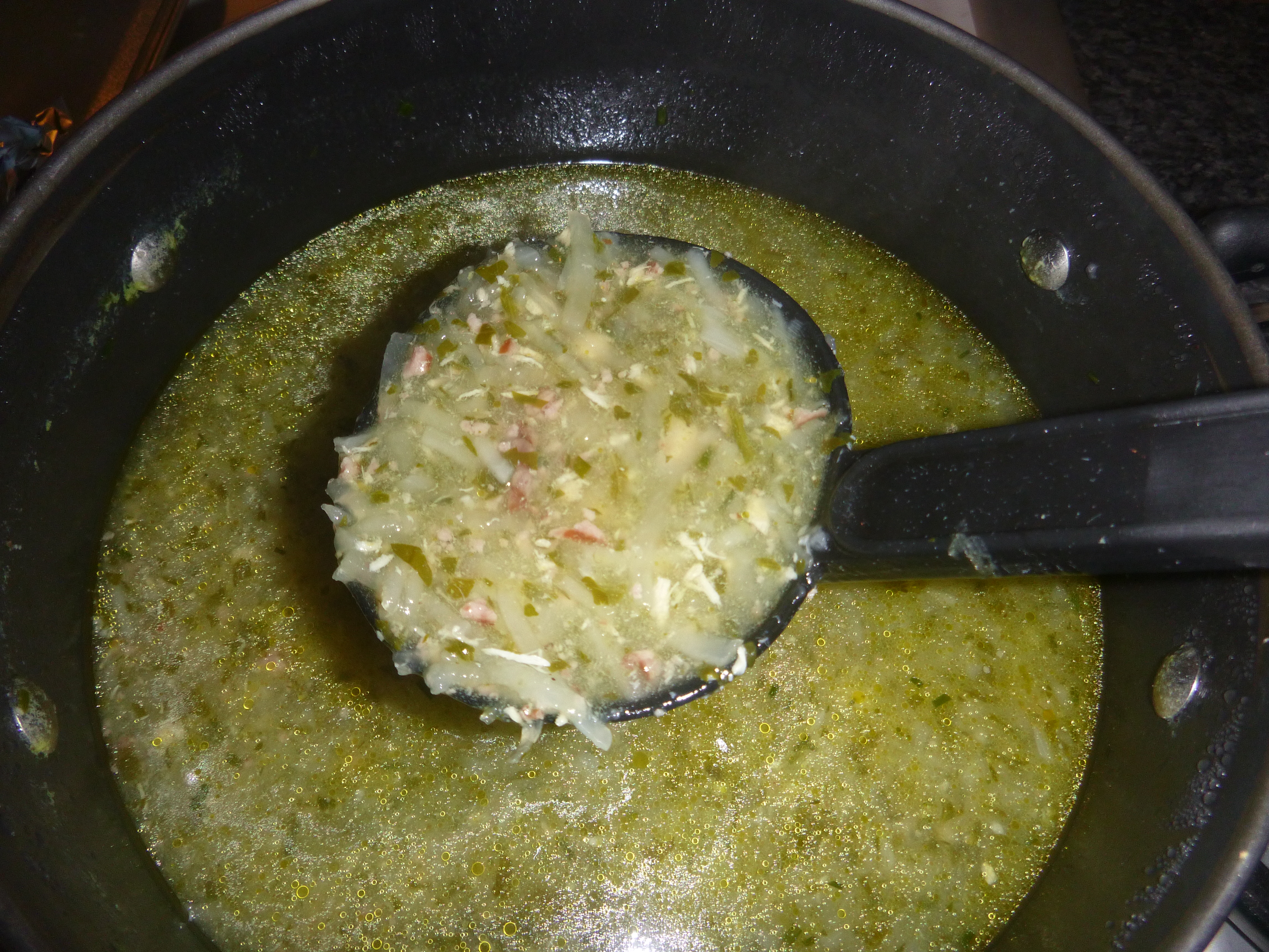 Option one: when the soup is cooked, pour half of it into a blender and blend it, then return it to the pot.  Your “broth” is creamy, but there’s something left to chew.  Note: this is a great way to get veggies into kids; if they pick out the carrots they can see, they still slurp down the ones they can’t.