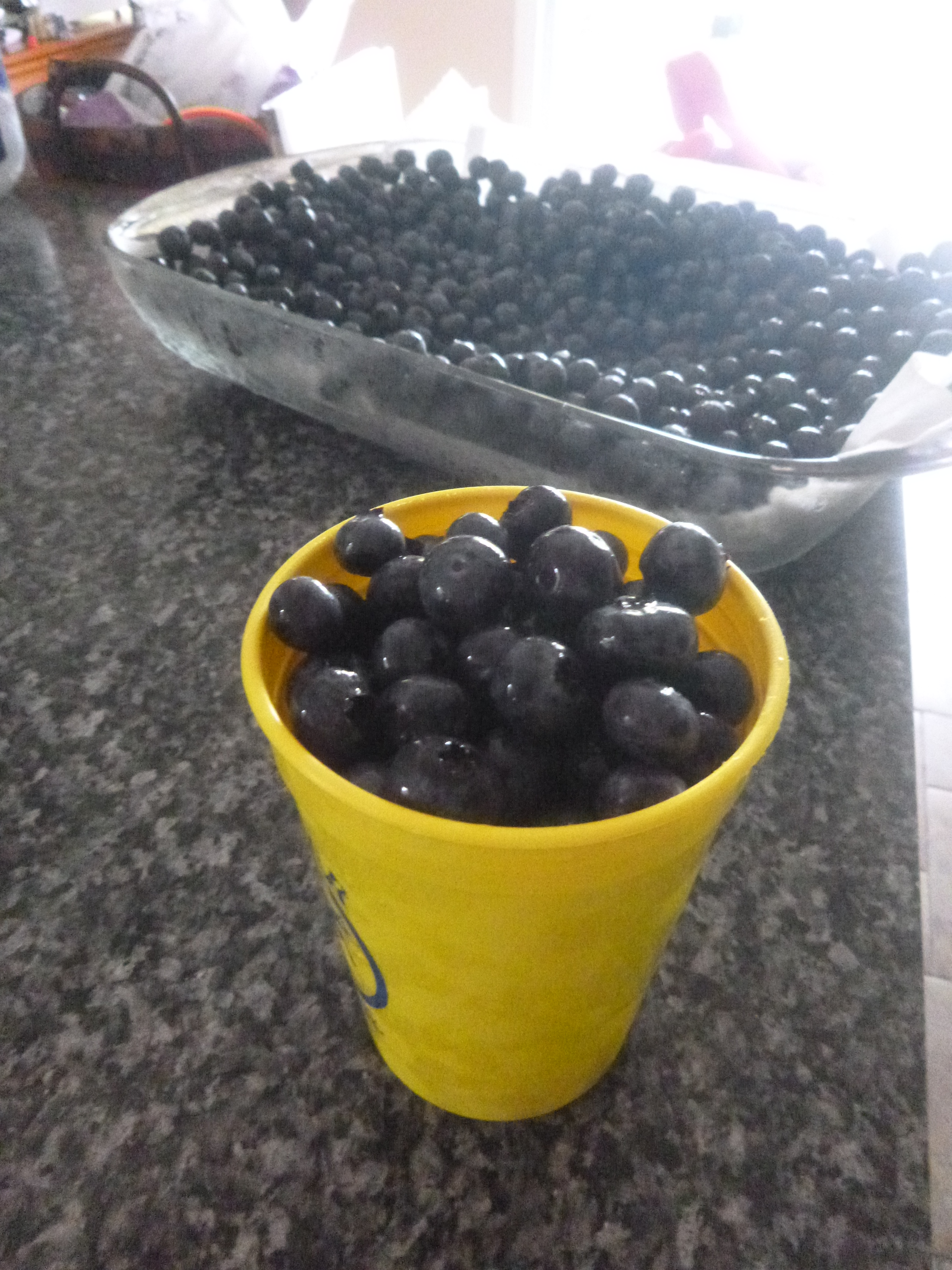 1. Fill plastic cup with blueberries.