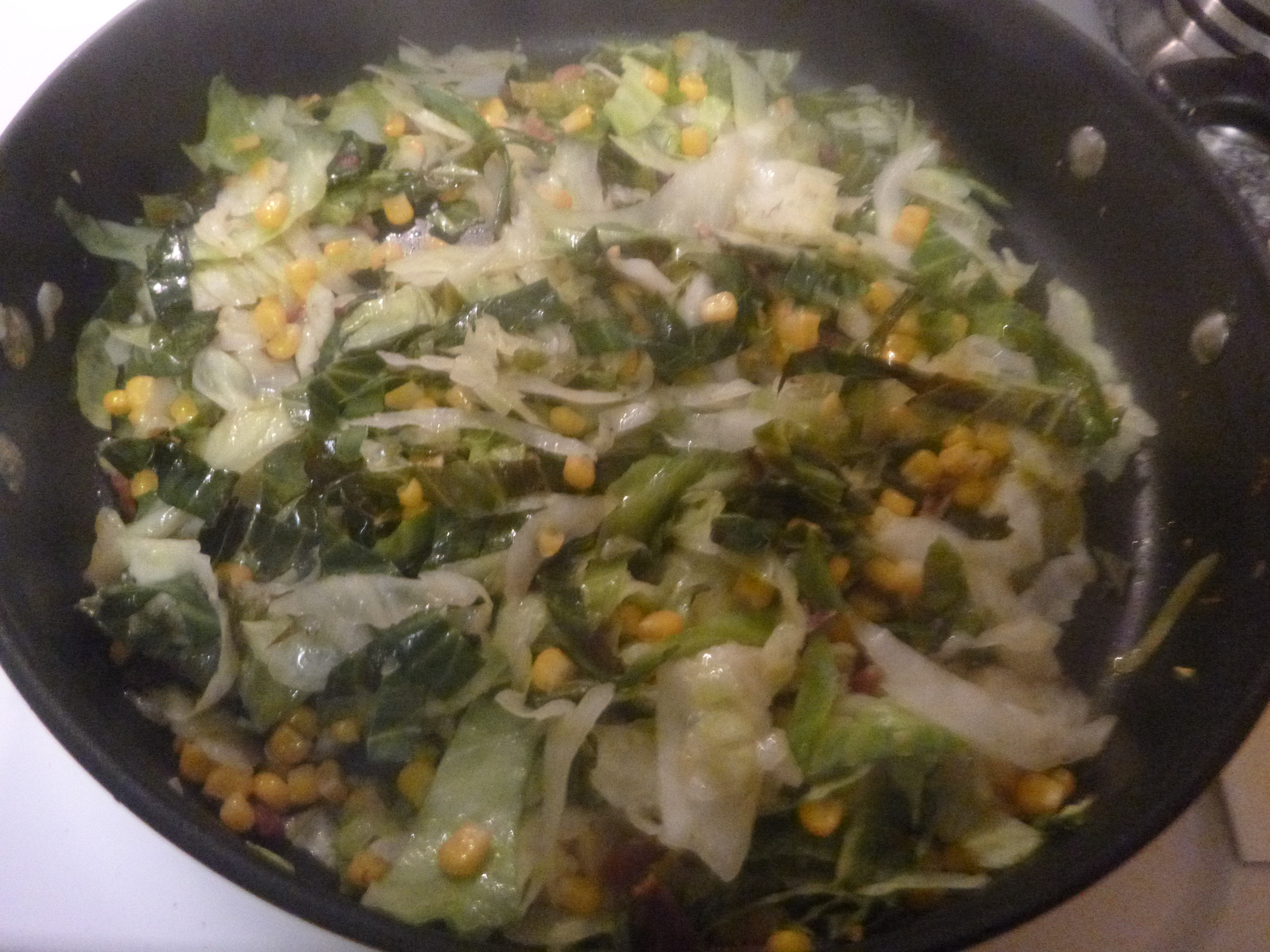 2. Add the veggies, cover, lower the heat, and cook 20-30 minutes or until the cabbage is soft.
