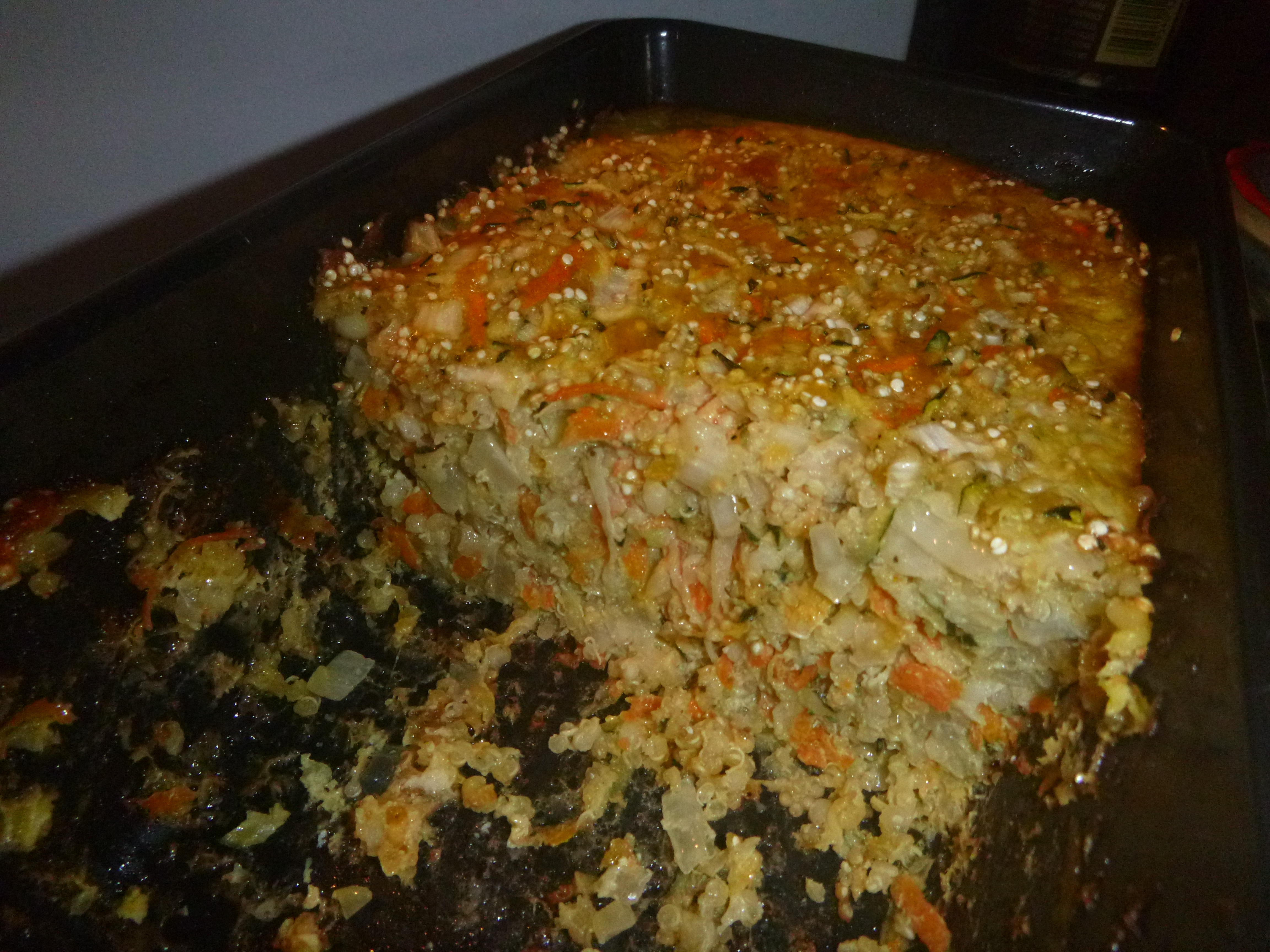 This recipe was given to me by a friend after she brought me a slice to try and I begged her for more. It has all of your major food groups in one pan.